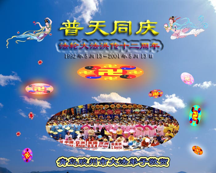 青岛胶州市大法弟子敬贺世界法轮大法日
