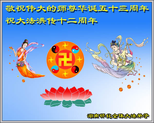 湖南怀化全体大法弟子敬祝伟大的师尊华诞五十三周年!祝大法洪传十二周年!