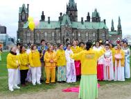 五月九日:在渥太华郁金香公园庆祝世界法轮大法日一年一度的加拿大郁金香节吸引了数十万的游人,学员在游人最集中的地带通过炼功和发放气球等庆祝活动,吸引了众多的游客。