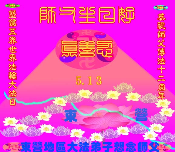 青岛即墨市大法弟子向师尊问好。恭祝5.13世界法轮大法日暨师尊传法十二周年。