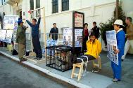 星期二上午,北加州8位参加“支持诉江跨美汽车之旅”的成员和旧金山湾区法轮功学员一起在中国驻旧金山总领馆前举行了发布会。“汽车之旅”的成员表示,将沿途向美国公众展示法轮功学员在中国遭受到的部分酷刑。这天当酷刑展示在旧金山中领馆前进行时,很多到中领馆办事的人驻足观看,有的表示支持,有的在思考。