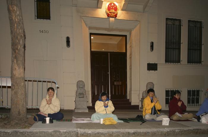 ![]() 法轮功学员在中领馆前要求严惩凶手 | ![]() 在领馆前请愿 | ![]() 在领馆发正念 |