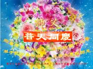 因迫害仍在继续,我们暂时还无法象海外一些地区的同修那样用录像和合影表达我们的问候,但我们祝贺的话语,我们的心意,特别是我们意志坚定、尽心尽力按照师父的要求做好“三件事”的实际行动,就是我们捧给师尊和圣日的最好献礼——