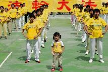 2004年5月8日是台北县三峡镇安溪国小学校暨社区联合运动大会,当天风和日丽、艳阳高照,与会的嘉宾络绎不绝。法轮功学员的功法表演登场,一出场就气势不凡,整齐浩大的队伍、庄严祥和的神态,加上优美的炼功音乐,全体学员随着音乐口令,缓、慢、圆的展示出五套功法的动作,吸引了在场许多嘉宾的注目和赞叹。