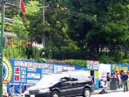![]() 学员在小蓝屋前炼功 | ![]() 请愿1000天的英文横幅 |