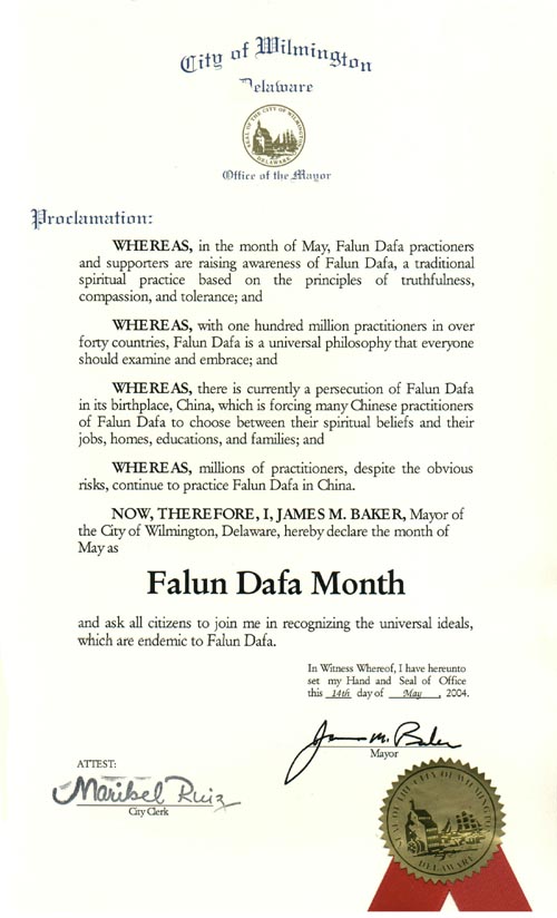 鉴此,我,詹姆士。贝克,特拉华州威明顿市市长,在此宣布五月为