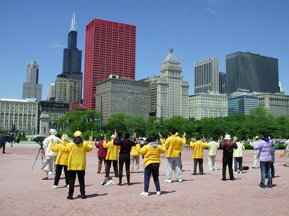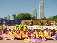 【明慧网2004年5月17日】2004年5月15日,为庆祝第五个“世界法轮大法日”,大芝加哥地区及自印第安纳地区的数十名法轮功学员们来到芝加哥著名的风景区—GRAND大公园,在密歇根湖畔,共庆这个特殊的节日。
