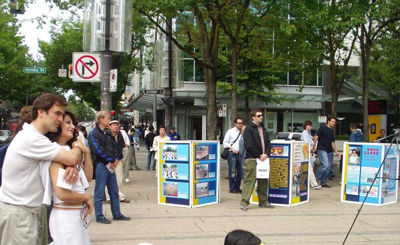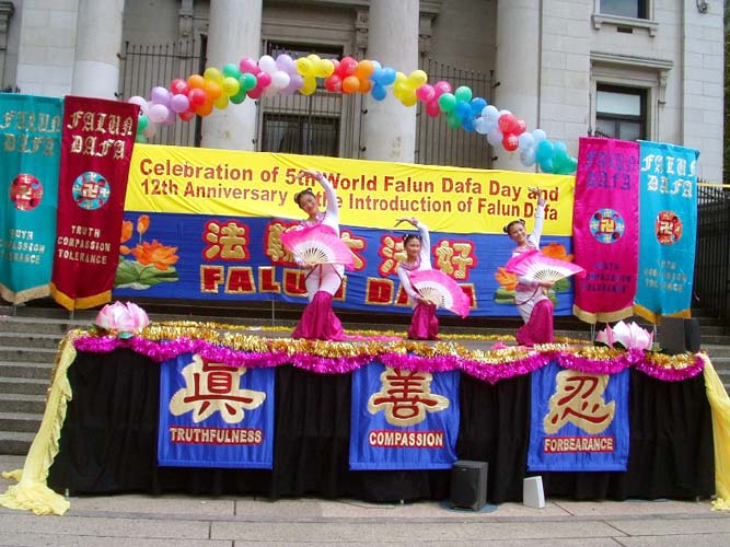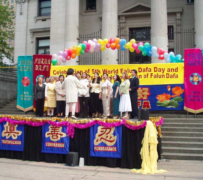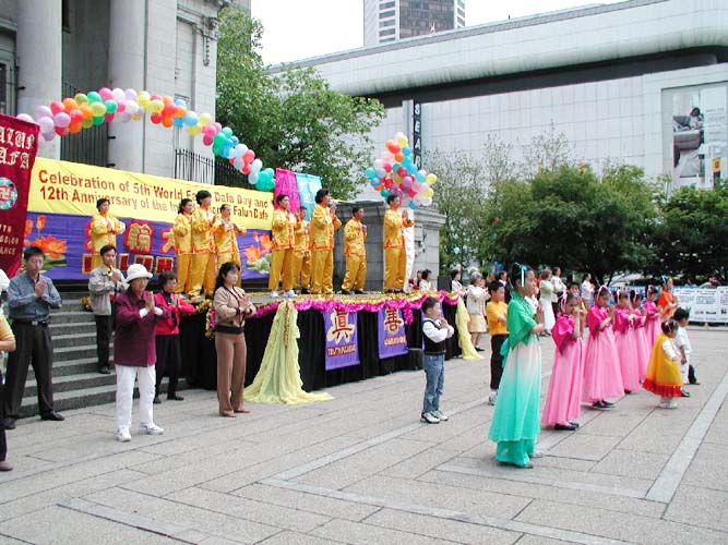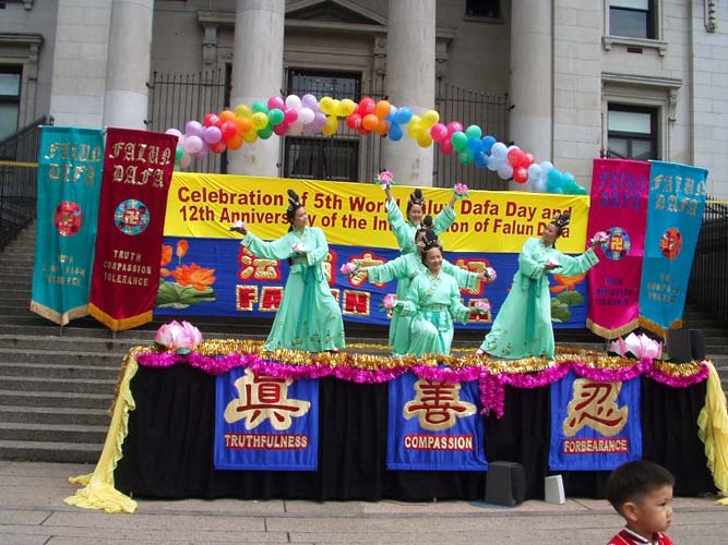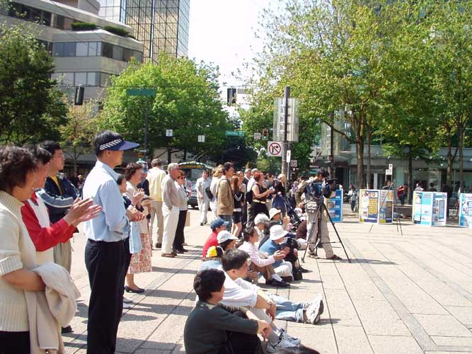 【明慧网2004年5月17日】(明慧记者李华温哥华报导)5月16日,温哥华学员在市中心艺术馆前进行庆祝法轮大法洪传十二周年及法轮大法日,丰富多彩的文艺节目和功法表现,吸引了众多的民众观看,充分展现了大法的美好和大法弟子的风范。(图片/李华摄)