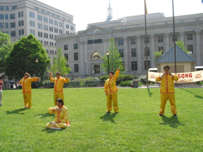 另外还有学员的发言,讲得法后的喜悦,讲迫害的真象。市民弗吉尼亚说:“我听说过法轮功。也熟悉中国[江氏]政府对炼功人的打压。这让我想起,一天早上在电视上看到的天安门广场上的流血(6.4)事件。每次想到这我都浑身发抖。