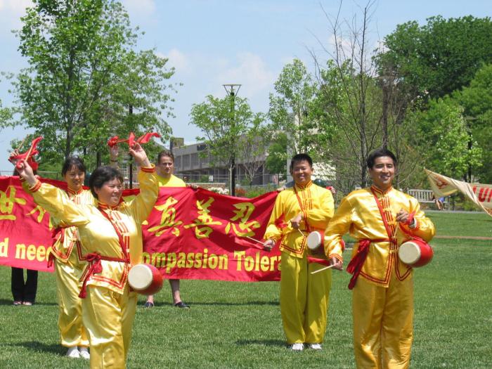 ![]() 腰鼓 | ![]() 扇子舞 | ![]() 合唱“法轮大法好” |