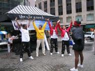5月15日,辛辛那堤和代顿的学员在辛辛那堤市中心的喷泉广场上向过往的行人介绍法轮功、及法轮功在中国被迫害的真相,有的人当场向学员学起了功法。