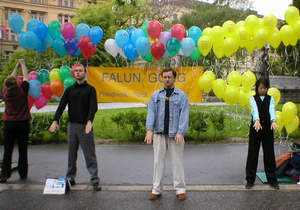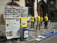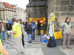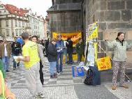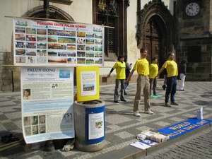 5月15日,我们还在捷克共和国首都布拉格举行了一个和平集会纪念法轮大法日。著名的“斯塔柔莫思特斯克-内默斯特”(Staromestske namesti)广场满是观看著名天文钟的人们,钟下法轮功学员和平的演示着功法。许多游人过来询问有关法轮功的问题,并且在了解真象后,他们表示了对我们的支持。学员举办了一个简短的新闻发布会,奥林匹克观察(Olympic Watch)的秘书泊特耳-库特俄克(Petr Kutilek)与会并宣读了他们的声明,反对在中国对法轮功的迫害。