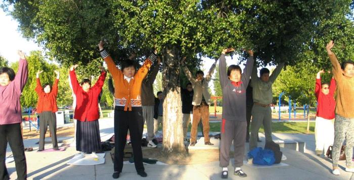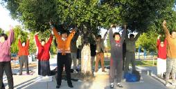 【明慧网2004年5月18日】2004年5月13日,圣荷西法轮功学员清晨6点钟在Townsend Park炼功, 满怀崇敬的心情,恭贺师尊华诞,热烈庆祝世界法轮大法日。