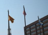 这两面旗子的升起,是特拉华州(属大费城地区)的法轮功学员们举行的庆祝法轮大法传世12周年及“世界法轮大法日”的庆祝活动的开始。
