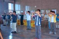 在举世庆祝世界法轮大法日之际,学员们举办图片展及功法表演,希望更多人了解法轮功真象,共同制止在大陆发生的迫害,让大陆的法轮功学员们重获和平的修炼环境,不久的将来也能自由的加入这节日的庆祝中来。