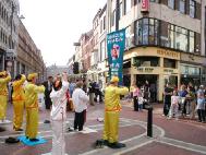 【明慧网2004年5月19日】爱尔兰的五月风和日丽,5月16日星期日,在都柏林市中心的步行街上爱尔兰法轮功学员载歌载舞欢庆世界法轮大法日。