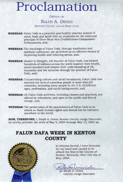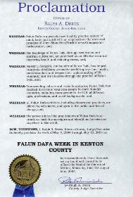 • 美国肯塔基州堪顿县褒奖法轮大法周