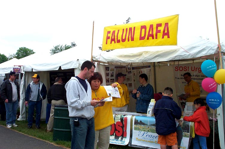 【明慧网2004年5月22日】5月15日和16日纽约上州来自罗彻斯特(罗城)、水牛城和雪城的法轮大法学员在一年一度罗城的丁香花节集市上洪法、讲真象,同时庆祝5月13日的世界法轮大法日。罗城的丁香花节集市在高地公园举行,以公园内春天盛开的紫色丁香花为名,吸引当地数十万的游人。今年也是当地的法轮大法学员连续第四年参加丁香花节活动。