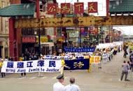 来自加拿大的学员林慎立先生说,参加今天的游行非常有感触。他本人曾因坚持修炼法轮功在大陆被关押在劳教所两年,遭受了残酷的迫害,后经各国法轮功学员和加拿大政府营救而获得自由。林慎立说,在这里,人们可以用游行等方式自由的发出声音,可是在中国却是不可想像的,法轮功学员在中国想向政府反映情况都不被允许,想保持自己的信仰却遭到迫害。现在有名有姓的被迫害致死的学员已经有968人。林慎立还表示,其实并不是中国政府在镇压法轮功,而是江泽民出于私利,操纵国家机器来迫害法轮功。这场迫害是不得民心的,也越来越没有市场。法轮功学员们呼吁更多的人来关注发生在中国的迫害,早日将迫害元凶江泽民绳之以法。