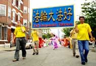 游行过程中,发资料的学员还与很多观看的民众交谈,人们的反应都很正面。学员们感觉到讲真象越来越容易了,许多人都很乐意接受法轮功的资料。