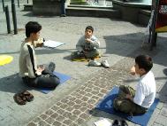 在讲座進行的同时来自卡尔斯鲁尔(Karlsruhe)的法轮功学员在市中心的市场广场上举办了关于中国人权问题的信息日。他们向对此感兴趣的人们分发了很多德文资料。法轮功五套功法引起了行人们的极大兴趣,人们纷纷驻足观看。很多人在一个呼吁释放一名德国大法弟子的母亲徐幼林的征签表上签了名。下午来了两个聪明活泼的男孩,想马上学习五套功法,而且在学第五套功法时,两个活泼好动的孩子都能静静地闭目坐很长时间,他们走的时候把所有的德文资料都拿了一份。