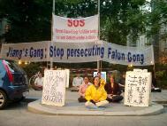支持芝城审江,柏林学员中国大使馆前集体发正念(图)