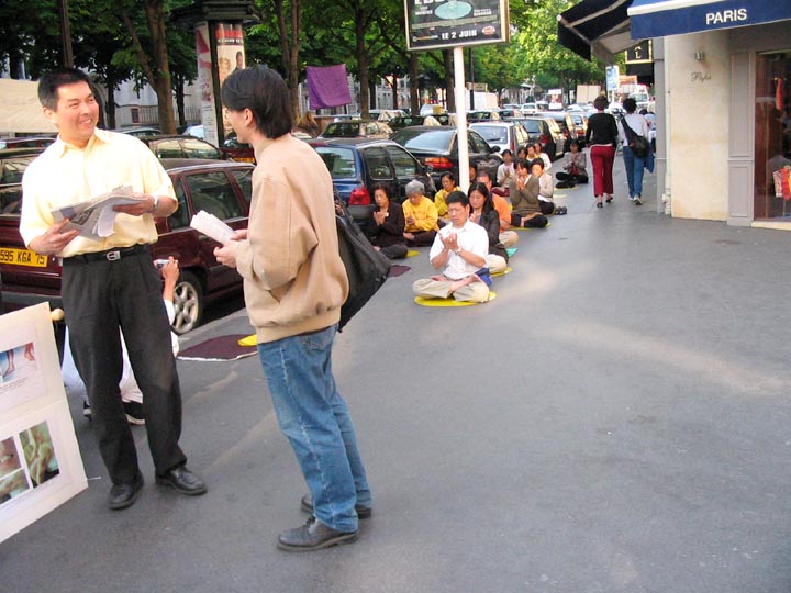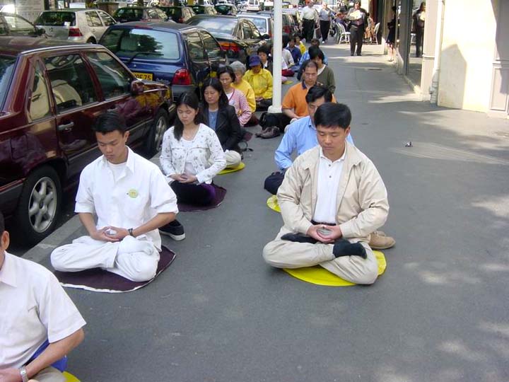 【明慧网2004年5月29日】5月27日,法国巴黎的法轮功学员和世界各地的学员一样,到中国大使馆请愿,声援芝加哥法庭诉江案原告的上诉庭辩。