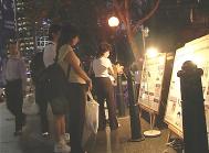 当天晚上,在活动進行到一半的时候,突然天降大雨,许多行人都步履匆匆。但在学员们强大正念的作用下,雨越来越小,观看真象片的人越来越多。更可喜的是有一些中国人主动问4.25的真象,并索取资料。这和以往很多中国人都远远避开有了很大的反差。