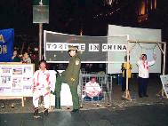 在祥和的音乐声中,法轮功学员集体功法展示吸引了众多的过往行人,过路行人纷纷索要宣传材料,并在征签表上签名。夜幕降临后,大型横幅“悼念被迫害致死的法轮功学员”在点点烛光的映衬下更显得肃穆。大屏幕投影仪放映的真象片采用中文解说,英文字幕,吸引了过往的行人,连马路对面的人都驻足观看。整个活动持续了4个小时。