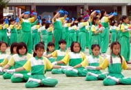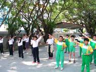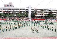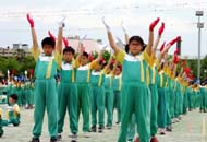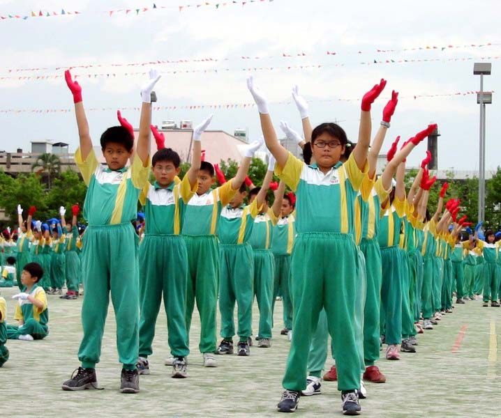 今年四月十八日,校庆运动会上在艳阳下正式开锣。开幕时,各年级的表演节目轮番上阵,表现出青春活力,而其中以四年级表演的“法轮功”,为最吸引人的一个节目。我引领全校四年级的363位小朋友,演炼法轮功五套功法。现场的师生、家长、来宾致以热烈的掌声并惊叹于这些小朋友的定力,能表现出如此的宏伟气势,令人为之动容。