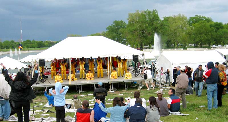 ◇1997年,数以千计的法轮大法学员在沿江公园大型集体炼功,庆祝法轮大法洪传五周年。无数的市民见证了那辉煌的场面。当炼功音乐悠然想起,一幅庄严美妙的画卷展现于世间,镌刻在宇宙的历史中。