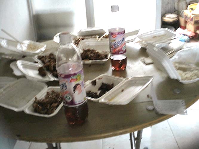 下面这个照片是恶警在姜伟住处等候抓捕其他大法弟子时所剩的饭菜。