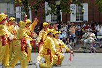 【明慧网2004年5月6日】2004年5月1日,来自大费城地区的法轮功学员们应邀参加宾州中部最大的多元文化节日庆祝活动--“AMANI 节”,给美国人带来了传统的东方文化。在法轮功学员表演的节目中,卡莱尔市的很多市民们随着法轮功学员高呼“真、善、忍”。