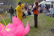 ![]() 法轮功学员的游行队伍 | ![]() 观众很高兴拿到法轮功的真象资料 | ![]() 莲花舞 |