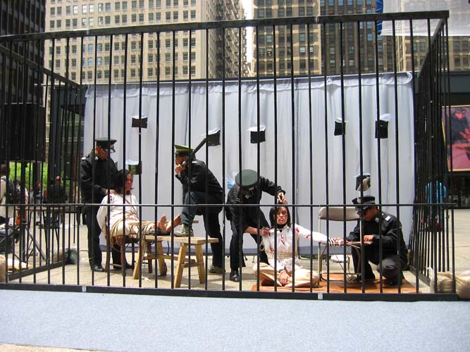 为了让更多的人们能够直观的感受到迫害的残酷,法轮功学员们近期采用以真人演示、模型演示、绘画描述等形式,演示了法轮功学员所受到的部份酷刑。