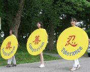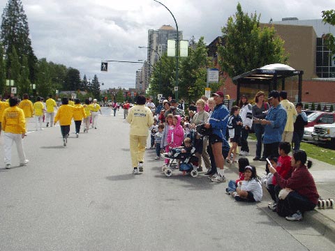 6月12日,北加州法轮功学员应邀参加了圣塔-克鲁斯市举办的夏令节游行,受到了当地民众的热烈回响和欢迎,法轮功的队伍还获得了2004年游行最佳表演奖。有的观众说,“我看到了你们的‘真善忍’横幅,这三个字太好了、太正了。”当四周的观众听到“法轮大法好”的歌曲时,都愉快的跟着唱了起来,有的人还跟着学功。一位先生说,“法轮功是我一生都在寻找的。”另一位先生不仅买了《法轮功》,还买了《转法轮》一书。