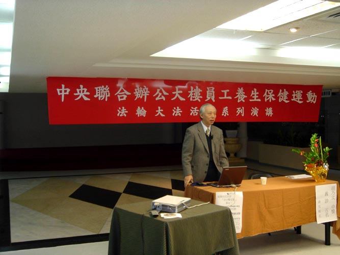 今年春节过后,为了疏解邻近机关同仁工作压力,经过炼功点学员们的努力,邀请在台湾医、学界因修炼法轮大法身心受益的专家结合本身专业,在「中央机关联合办公大楼」一连四周举办法轮大法专题讲座分享体会,并佐以教功、洪法活动,这真是一次难得的体验与修炼过程,也让法轮大法在同仁心中留下美好深刻印象,最近学炼功法的新学员也增多起来;比起中国大陆的法轮功学员连说个「真善忍」都会被抓、被劳教,我们真是感激身在台湾,能自由选择信仰、自由炼功,能公开的告诉更多人法轮大法好。