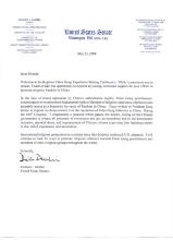 美国联邦参议员里查得.得本(Richard J. Durben)的贺信。