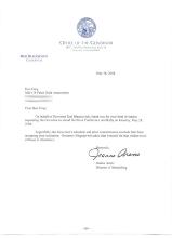 伊州州长办公室珍妮.尔仁(Jeanne Arens)代表伊州州长罗得.布拉高维杰(Rod Blagojevich) 的贺信。