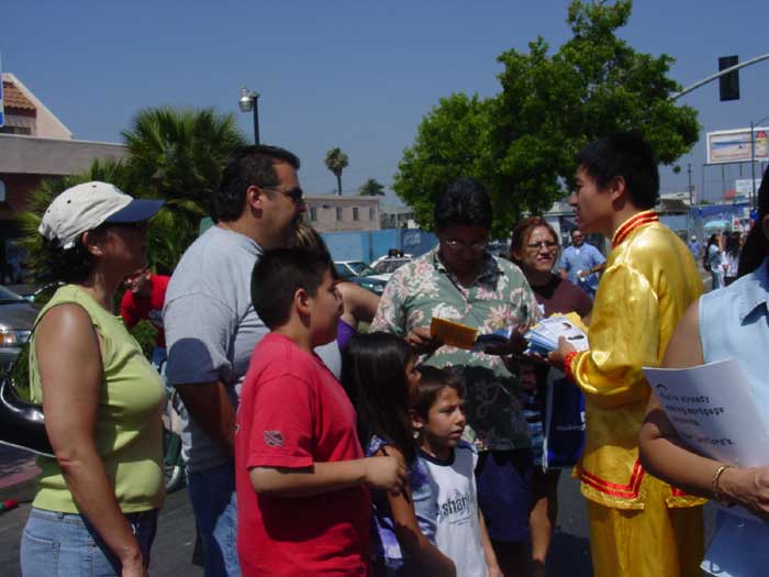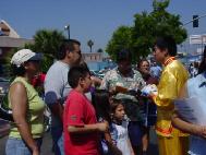 【明慧网2004年6月18日】2004年6月5日,加州圣地亚哥市的近10名法轮功学员参加了在圣地亚哥市区举行的海兹城社区国际节(City Heights International Village Celebration)的庆祝活动,受到当地民众的热烈欢迎。海兹城社区国际节是当地的一个重要活动,吸引了大约近五万居民的参与。今年是法轮功学员首次申请参加这一社区活动,大家抓紧一切时机让更多的民众了解真象。