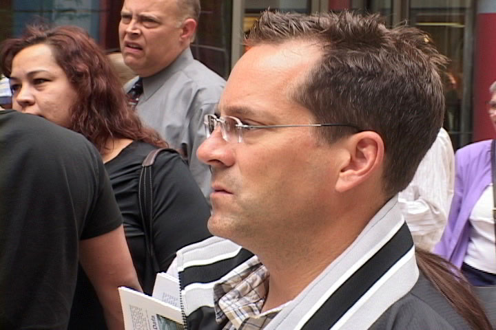 [注] 图为观看法轮功学员酷刑展示的观众