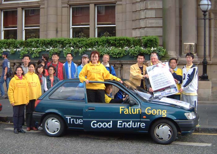 【明慧网2004年6月2日】2004年5月29日星期六,英国法轮功学员开始了2004年苏格兰汽车之旅,汽车之旅的目地是唤起民众对中国大陆江氏集团迫害法轮功的关注。四位来自苏格兰与英格兰的学员将参加此次为期六天、自苏格兰首都爱丁堡出发、造访苏格兰六个城市的汽车之旅。