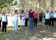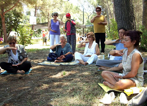 在午餐开始前,学员们向所有学功的人简单的介绍法轮大法并讲述了正在中国发生的对法轮功学员的残酷迫害。人们很难相信这个他们刚刚体验到的如此美好的功法竟会在中国遭到镇压。最后,人们以热烈的掌声表示他们对在中国受到迫害的法轮功学员们的支持。