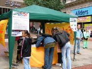以前由于在利兹的讲真象活动做得不够,路人不怎么愿意接受法轮功真象传单,特别是中国人。这一次,连中国人都愿意接受真象材料,还有人询问炼功点,表示要来学功。学员们还征集到近两百个签名。由于大家在这次活动中整体配合很好,所以讲真象活动较以前有所突破。