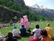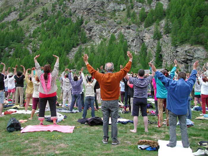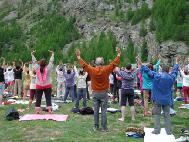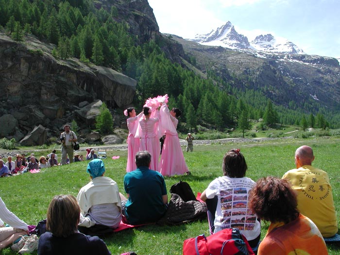 【明慧网2004年6月23日】在意大利海拔两千多米的瓦琅之谷,法轮功学员应“苍鹰飞过之处”协会的邀请,参加了题为“大地母亲的治愈”活动。近三百多与会的意大利民众观看了法轮功学员表演的莲花舞,并学炼法轮功的五套功法。许多有缘人表示要开始看书并找当地的炼功点学炼功法。