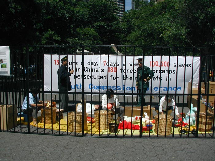 * 展示法轮功学员被强迫做奴工生产