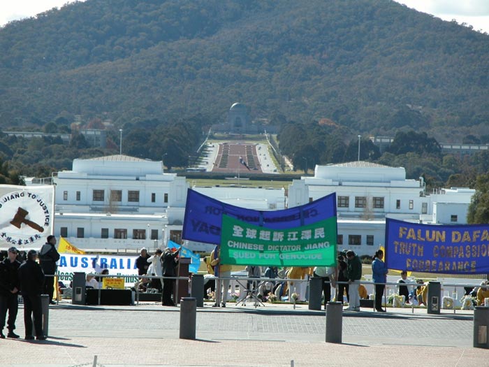 自2002年江泽民在芝加哥被法轮功学员以群体灭绝罪告上美国法庭,法轮功学员先后在比利时、西班牙、德国、韩国、台湾等地提起诉讼。法轮功学员在堪培拉市中心通过模拟法庭公审江氏,向大众说明元凶江泽民对这场镇压具有不可推卸的责任,它必被送上审判台。