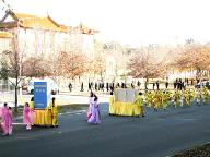 游行队伍在中国大使馆前,再次模拟法庭公审江氏集团对法轮功学员的迫害。最后全体法轮功学员长时间发正念,结束当日的活动。