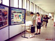 从展出的第一天起,法轮功学员们就感受到了大家的热烈反应。只要下课钟声一响,就看到附近上电脑课的同学们一批批涌到展位前来了解,所以长廊上总是聚集了满满的观看人群。