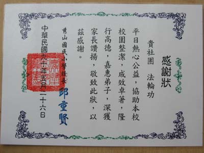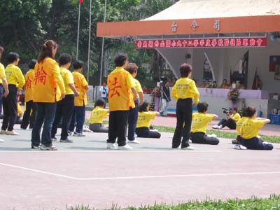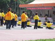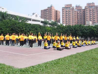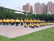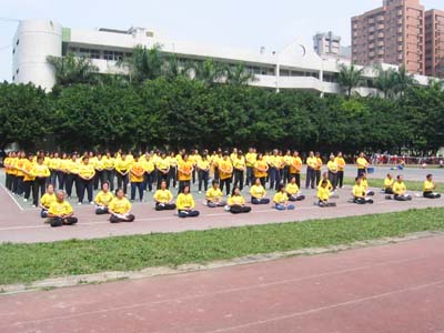 今年(2004年)五月份校方举行年度运动大会,家长会长陈明美也是法轮功学员,主动接洽功法表演。10分钟的表演时间内,100多位学员同时展示五套功法,整齐的黄色炼功服和祥和优美的炼功动作,吸引民众主动前来询问和要资料,很多人喜欢这套功法,越了解法轮功的人越想修炼,该地区当月份九天班来学法轮功的人数剧增。